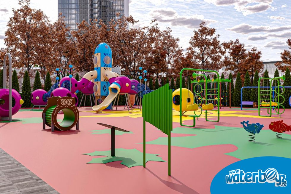 În jurul rachetei, spațiul este completat de o cursă cu obstacole, leagăne, tuneluri, balansoare și sisteme de cățărare, toate concepute pentru a încuraja activitatea fizică și cooperarea între copii. Acest loc de joacă nu doar că asigură ore întregi de distracție, dar sprijină și dezvoltarea coordonării, a echilibrului și a spiritului de echipă, contribuind astfel la o dezvoltare armonioasă și sănătoasă.