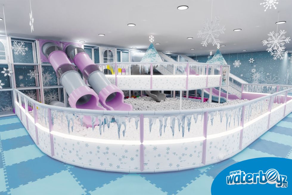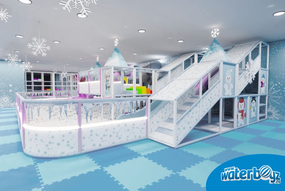 Amenajarea include și o zonă de construcție cu cuburi numerotate, perfectă pentru creativitate, plus echipamente softplay și o piscină cu bile, oferind o gamă variată de activități care încurajează dezvoltarea cognitivă.