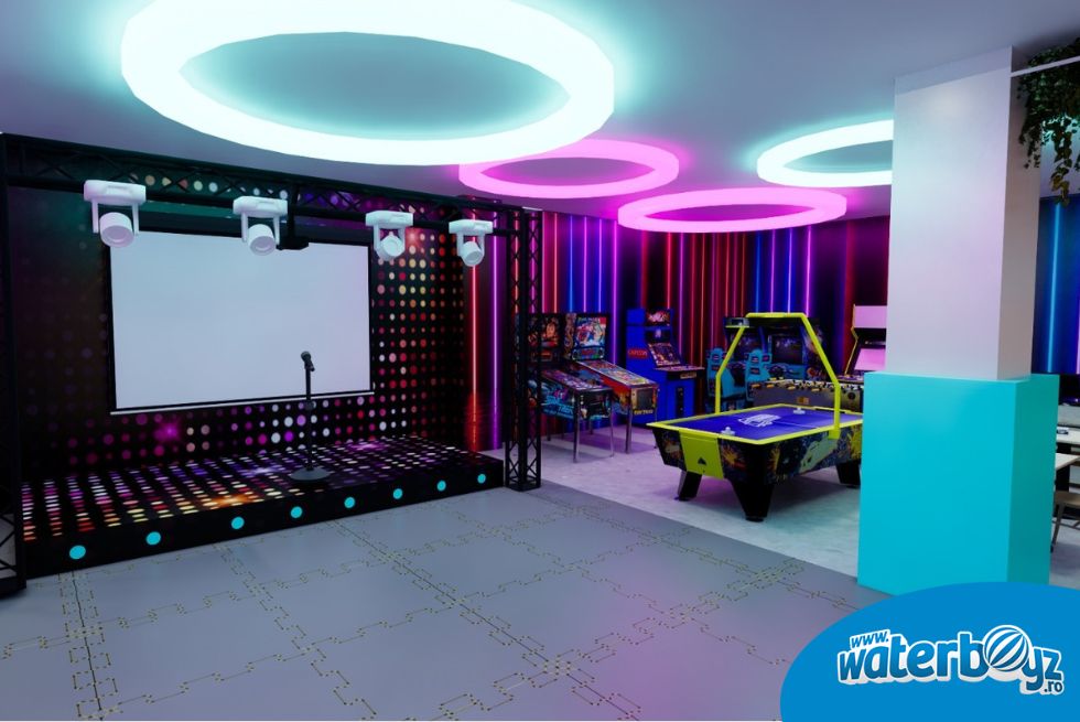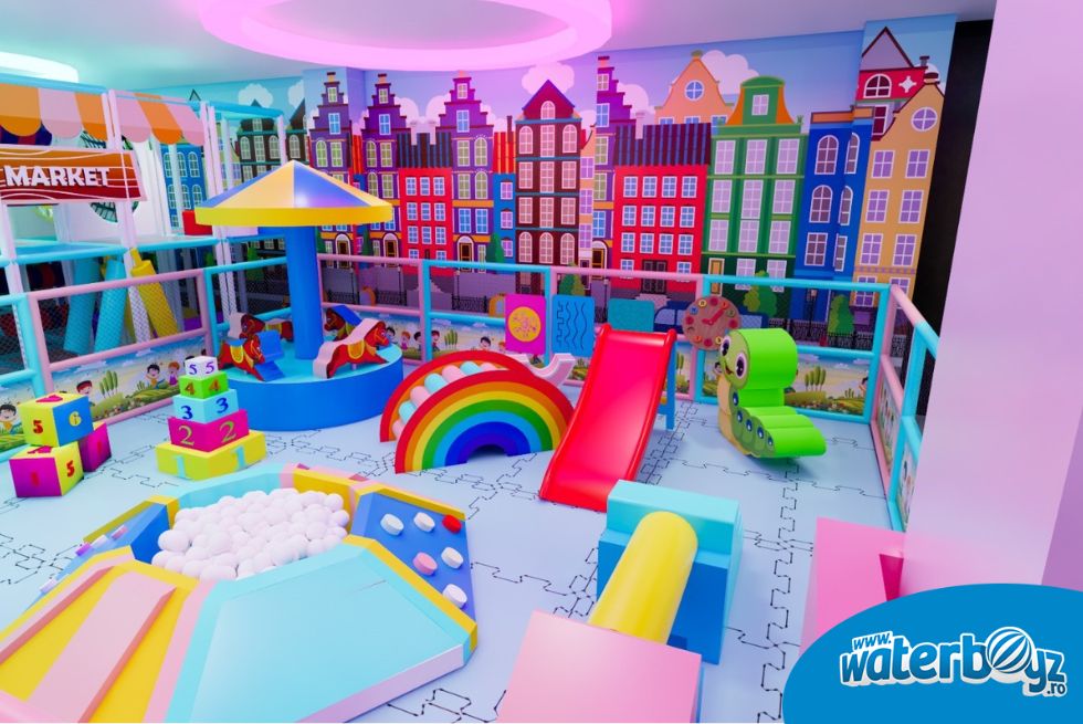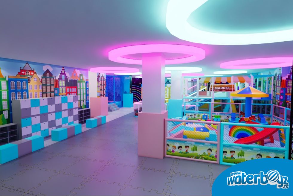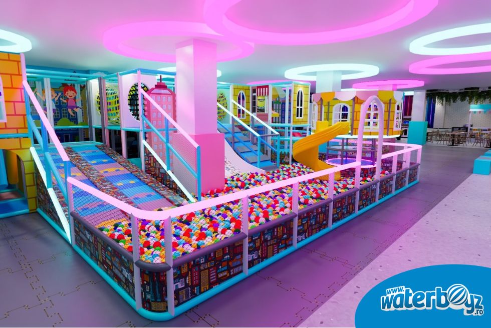 Pentru cei mici, există un spațiu softplay cu tobogan, balansoare și un carusel. Cuburile de construit permit copiilor să creeze propriile lumi, stimulând imaginația și gândirea logică. Zona de karaoke sau scena pentru evenimente este ideală pentru organizarea de activități interactive, iar zona arcade cu jocuri video și air hockey sunt perfecte pentru un plus de distracție.