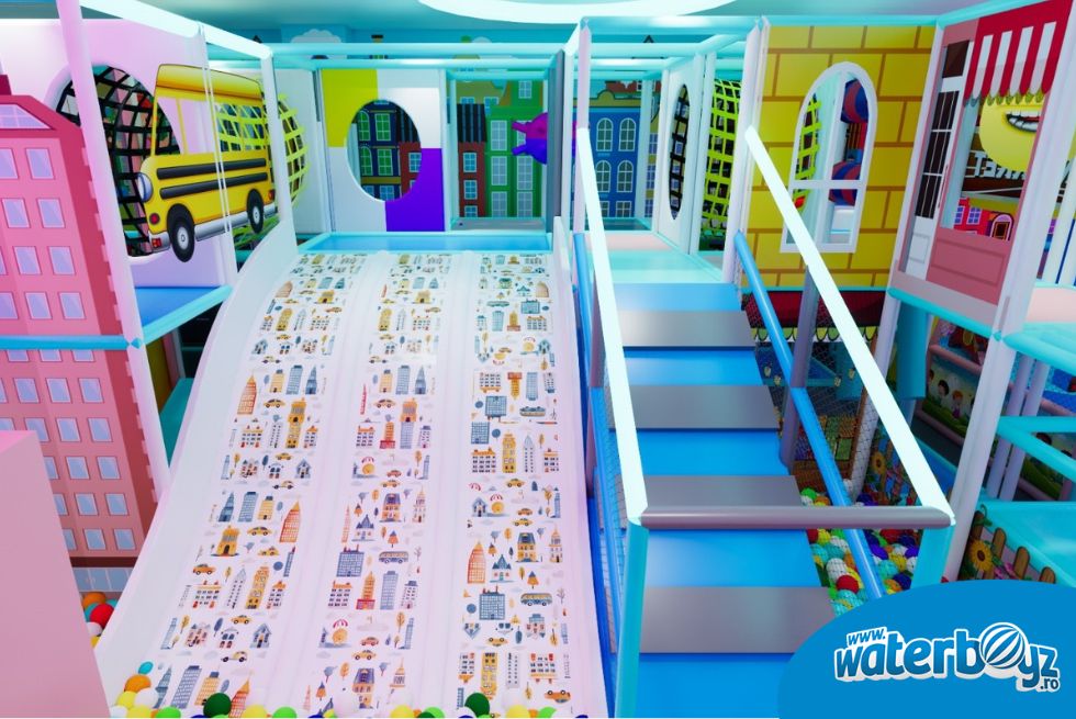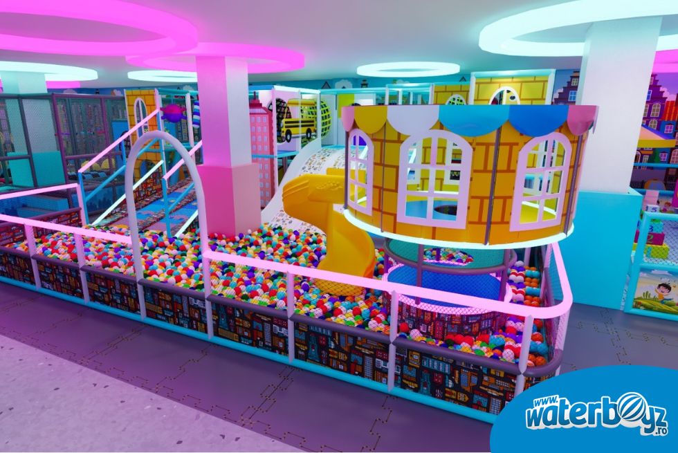 Amenajarea completă a locului de joacă de interior Fun City este concepută pentru a oferi o experiență de neuitat copiilor, stimulându-le creativitatea, abilitățile fizice și sociale într-un mediu sigur și distracțiv. Locul de joacă modular, înconjurat de panză de protecție, include o piscină cu bile multicolore, un tobogan spiralat și multiple tuneluri de cățărare, care încurajează explorarea și dezvoltarea coordonării. Peretele de escaladă și sistemele de cățărare sunt perfecte pentru îmbunătățirea forței și abilităților motrice.