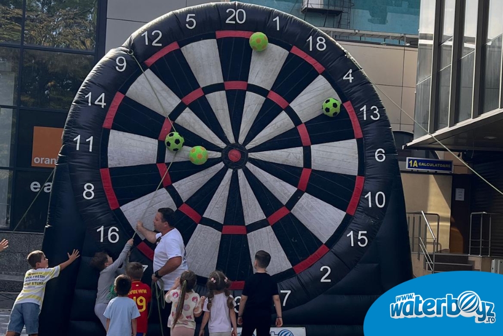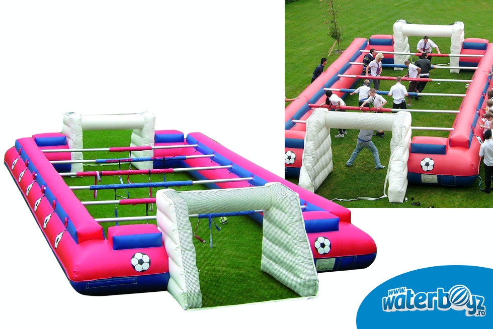 1. Human Foosball gonflabil este o versiune spectaculoasă a jocului tradițional de fotbal în miniatură pentru doi jucători. În loc de jucători mici, oamenii devin piesele de pe teren, iar jocul permite participarea unui număr mult mai mare de participanți.