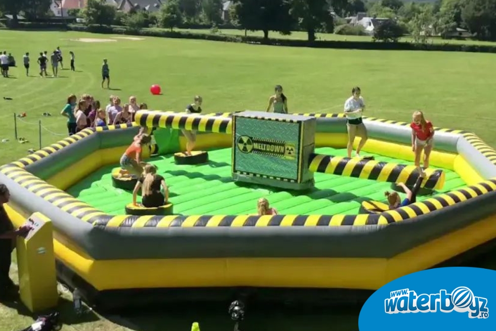 3. Joc competitiv gonflabil Ultimul Supraviețuitor sau Toxic Wipeout Challenge este o variantă de joc cu obstacol, extrem de popular în cadrul evenimentelor de team building, parcuri de distracție sau competiții amuzante. Este inspirat de show-urile de televiziune, cum ar fi „Wipeout”, unde participanții trebuie să depășească o serie de obstacole fizice într-un cadru amuzant și provocator.
