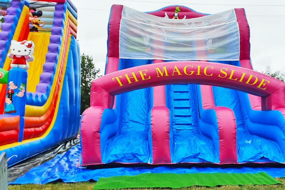 Două tobogane gonflabile – Disney World și Disney Junior cu două pante - mari, colorate și spectaculoase, perfecte pentru alunecări amuzante și momente de adrenalină controlată.