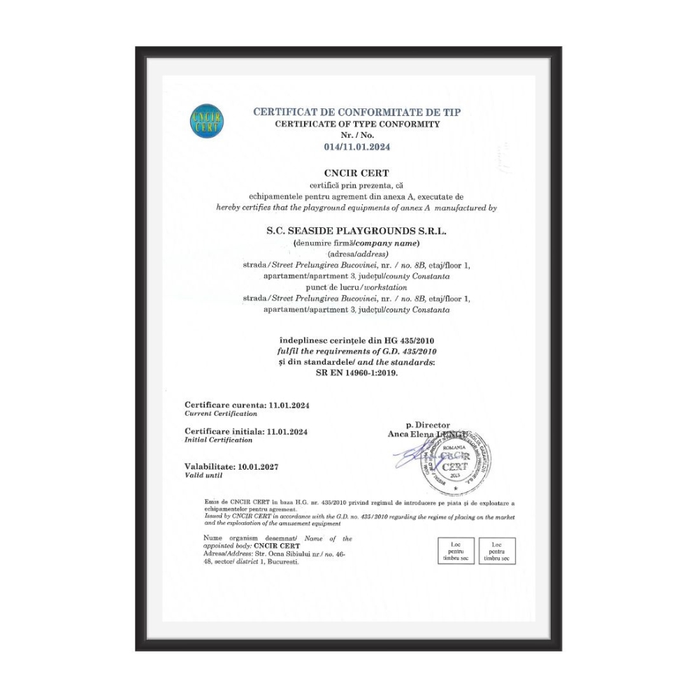 ✔ Certificări internaționale: CE, EN 14960 privind siguranța echipamentelor gonflabile.