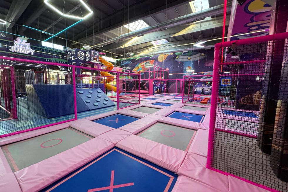 La Jumpy, fiecare metru pătrat este plin de energie. Amenajarea Jumpy dispune de patru zone, fiecare creată pentru a oferi o experiență unică. Zona principală este dedicată trambulinelor, toboganelor și traseelor Ninja, unde copiii își pot testa agilitatea. Cele 21 de trambuline interconectate formează o zonă spectaculoasă, ideală pentru sport, acrobații și competiții.
