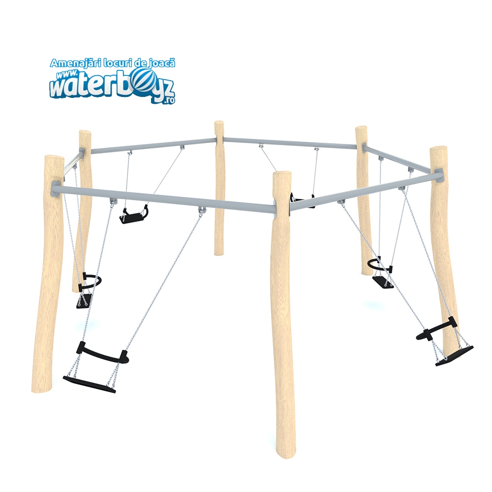 Aceste soluții pentru joacă descriu o dinamică simplă, fiind recomandate pentru copii de toate vârstele, dar mai ales pentru cei care preferă un stil de joacă mult mai liniștit. Structurile din salcâm sunt concepute să reziste la mișcările specifice unui balansoar, indiferent de vremea de afară. Elementele de confort și siguranță permit experiențe de utilizare apreciate de orice copil.