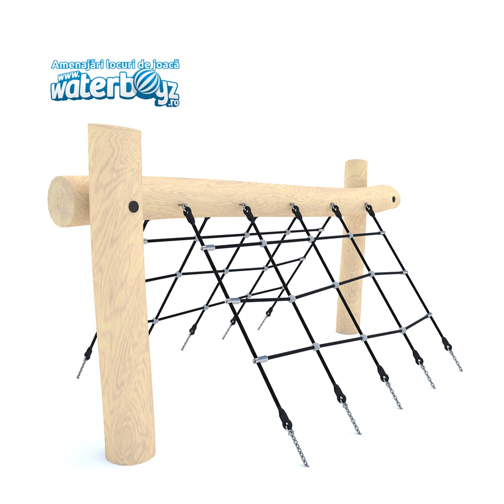 Echipamentele din aceasta pagină propun stiluri de cățărare diferite, pe suprafețe ce diferă ca formă sau dimensiune. Cei mici se pot juca pe planurile inferioare și superioare ale sistemelor de cățărare din lemn Robinia, în condiții de siguranță deplină. Frânghiile acestora sunt realizate din polypropilenă cu nucleu metalic, dispunând la capete din aliaj de aluminiu presat.
