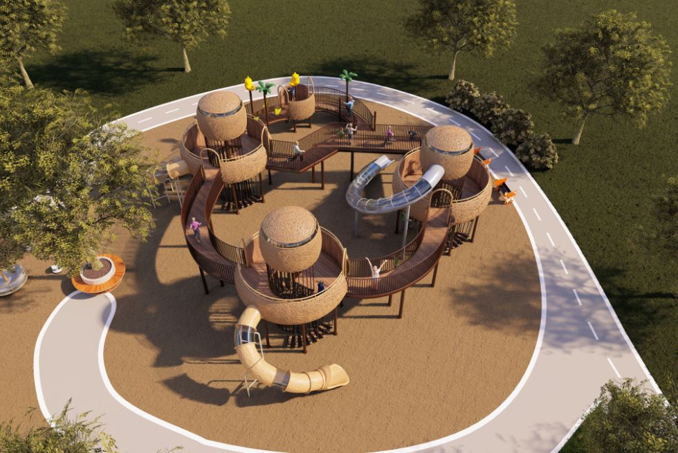 Complex de joaca din metal pentru copii Bird's Nest Paradise 1, exterior, 3-15 ani, 2200x1900x610 cm