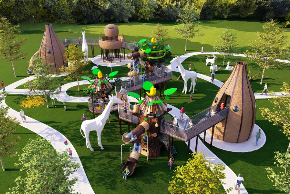 Complex de joaca din metal pentru copii Bird's Nest Paradise 2, exterior, 3-15 ani, 3300x3000x700 cm