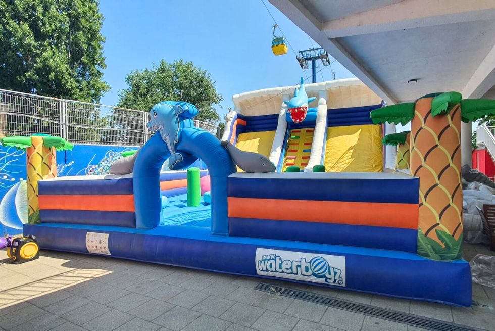Ideal pentru evenimente, acest tobogan gonflabil promite să fie punctul de atracție al oricărei petreceri, combinând siguranța cu distracția într-o temă marină fascinantă.