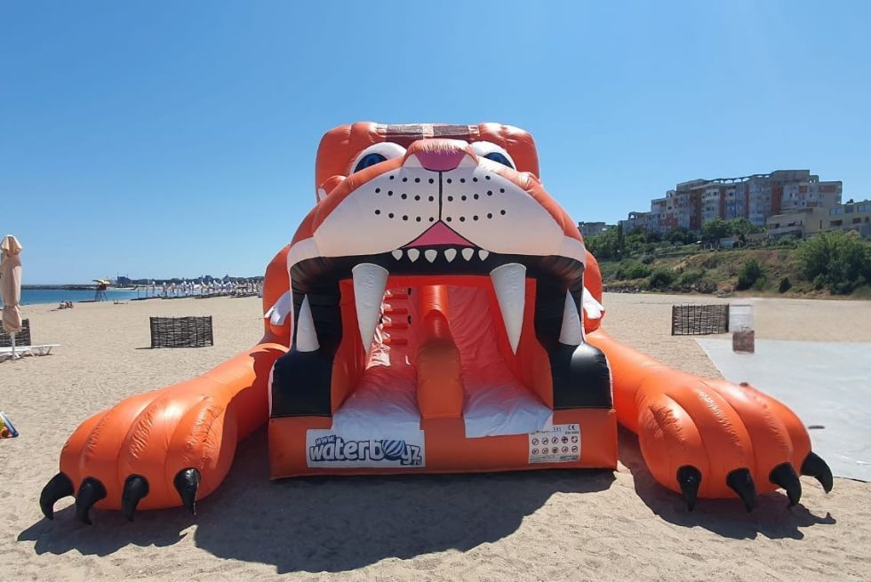 Toboganul Tigru poate fi reconfigurat la oricare alte dimensiuni si puteți alege diferite culori, după bunul plac. Un echipament gonflabil din categoria URIAȘ, ideal pentru a deveni atracția zilei.